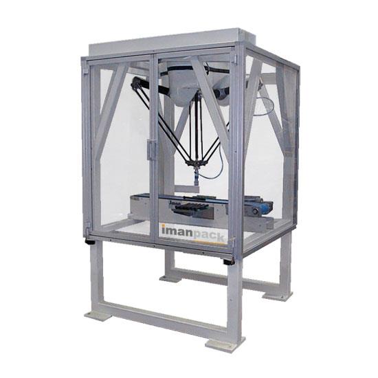 Robot Pick & Place multifunción de alta velocidad. Adecuado para la alimentación automática de envasadoras horizontales, para la carga de bolsas en cajas de cartón, para la orientación y la alineación de productos y para el control y para el descarte de los productos defectuosos.